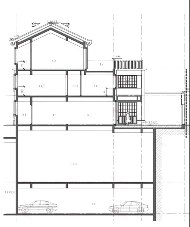 小区的2号楼别墅为双拼,东边套为地上1-2层外加阁楼。建造风格应该也是新里弄的石库门样式了,看看下面的剖面图就知道了: