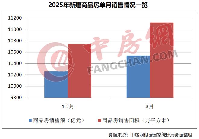 从单月情况看,新建商品房销售面积和销售额增速均实现正增长。根据中房网测算,3月份新建商品房销售面积为11123万平方米,环比上涨3.51%,同比下降1.56%;新建商品房销售额为10539亿元,环比上涨2.73%,同比下降 2.32%。