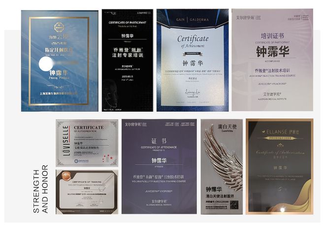 钟霈华院长,南方医科大学整形外科硕士,他不仅是中国整形美容协会面部年轻化分会会员、中国非公立机构整形与美容专业委员会会员、广东省整形美容协会面部年轻化委员会会员,并多次受邀参加国际知名学术会议,还是众多一线品牌产品指定注射医师。